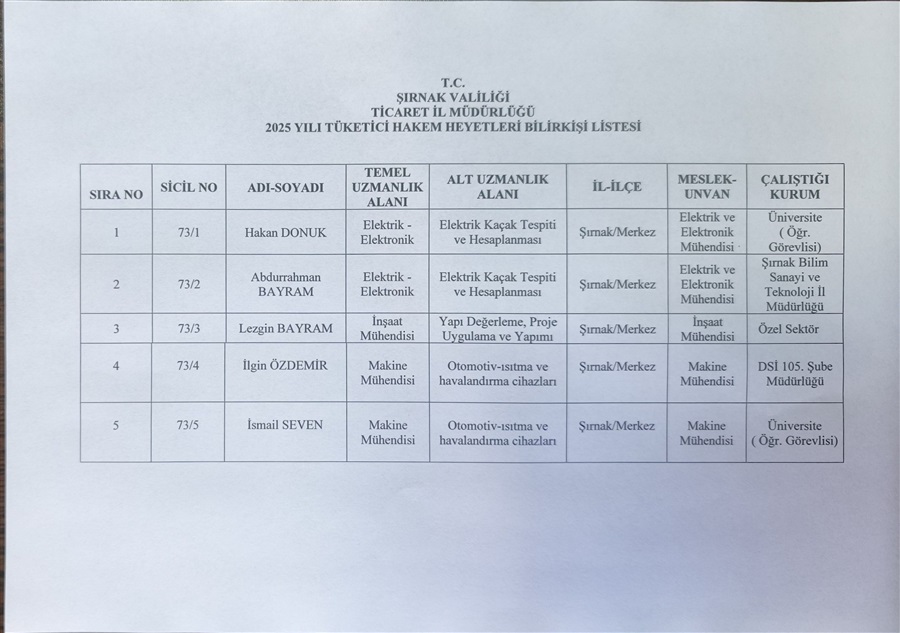 https://sirnak.ticaret.gov.tr/data/63ad26ee13b876a1c8715cde/2025 YILI TÜKETİCİ HAKEM HEYETLERİ BİLİRKİŞİ LİSTESİ.pdf